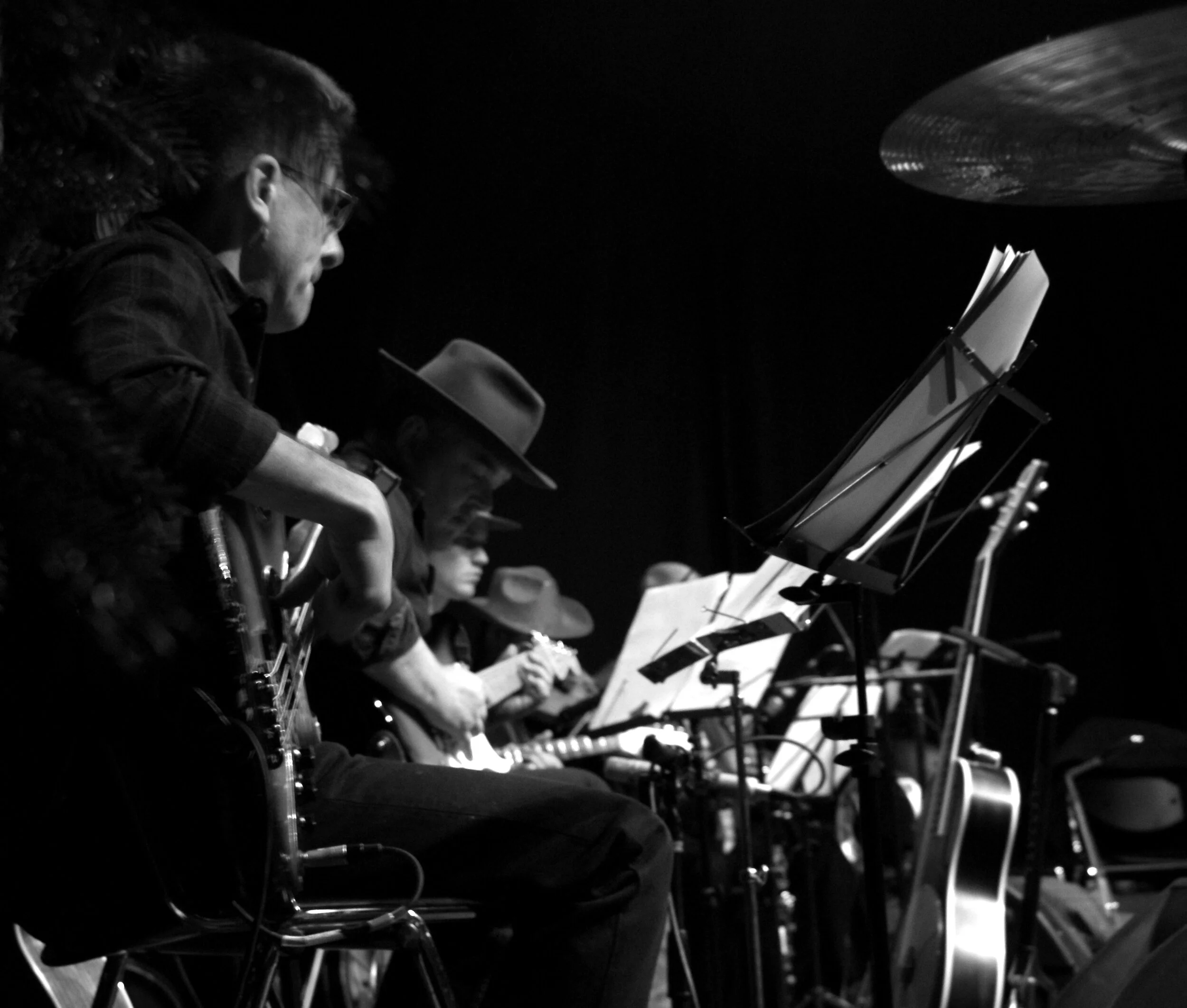 Our Band Leader negotiates some tricky riffs during the 1984 miners’ strike benefit show